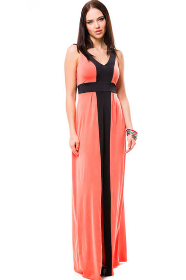 Фото товара 3999, длинное летнее платье с глубоким декольте и разрезом впереди