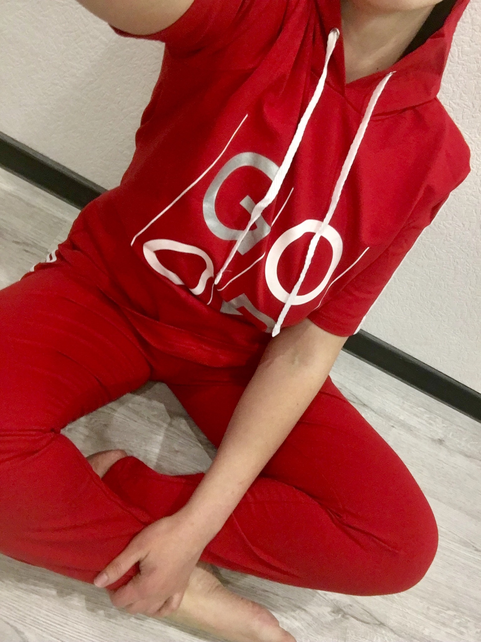 Фото товара 20479, красный спортивный костюм с капюшоном